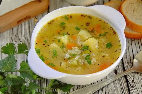 Курица, Рис длиный ( Шахзаде), Картофель, Морковь, Лук репчатый, Перец черный молотый, Петрушка
